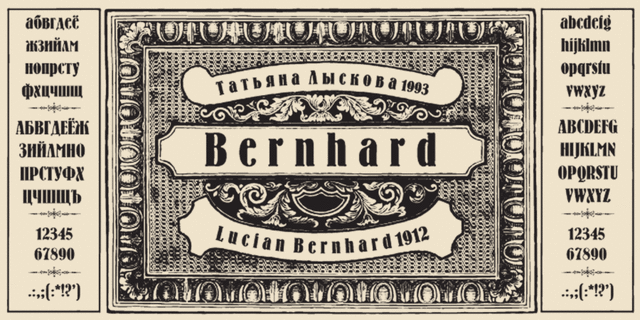 Шрифт разработан в фирме ПараТайп (ПараГраф) в 1993 (дизайнер Татьяна Лыскова) на основе рисунков шрифта Bernhard Condensed фирмы Bauersche GieЯerei, 1912 (дизайнер Люциан Бернхард). Предназначен для применения в рекламе и акциденции.