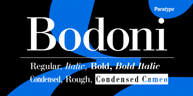 Гарнитура разработана в фирме ПараТайп (ПараГраф) в 1989 (дизайнер Александр Тарбеев) по мотивам современных вариантов шрифтов итальянского гравера и типографа конца XVIII века Джамбатиста Бодони. Бодони был директором типографии герцога Пармского. Его ранние работы повторяли рисунок гарнитур Фурнье и Дидо, но по мере развития мастерства Бодони его шрифты стали считаться первыми среди шрифтов нового стиля. Его буквы имеют абсолютно вертикальные овалы без наклона осей, сильно контрастирующие основные и соединительные штрихи и длинные острые нескругленные засечки. Контраст толстых и тонких штрихов в шрифтах Бодони может производить эффект мерцания полосы набора, поэтому их надо аккуратно применять в тексте, но они хороши для заголовков и акцидентных работ. Узкое начертание было добавлено в 1993.