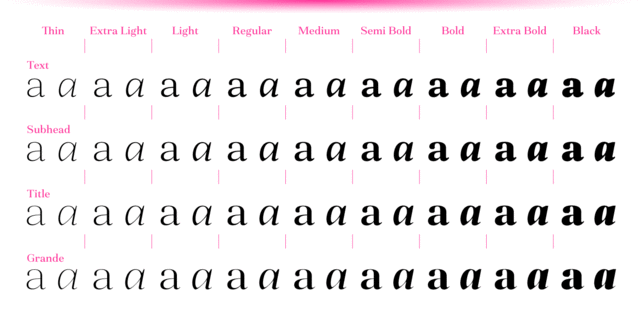 Версия шрифта для заголовков и названий. Fiorina – это антиква нового стиля, состоящая из 72 начертаний. Шрифт поставляется в 4 оптических размерах: от текстового с умеренным контрастом до суперконтрастного Grande. Каждый из 4 наборов имеет 9 весов с соответствующим изысканным курсивом. Общее разнообразие начертаний делает Fiorina идеальной гарнитурой для журналов. Набор глифов поддерживает все европейские языки на основе латиницы, а также все основные языки, в которых используется кириллица. Шрифтовое семейство также поддерживает многочисленные функции OpenType, включая 6 наборов цифр, капитель, дроби, надстрочные и подстрочные индексы, порядковые числа и многое другое. Шрифт разработал Андрей Константинов в студии Mint Type в 2020 году.