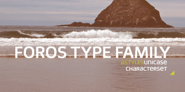 Шрифт Foros™ (Форос™) относится к классу современных гуманистических гротесков. Гарнитура состоит из 8 начертаний четырех насыщенностей, каждое из которых расширено комплектом знаков «юникейз» (своеобразной смесью строчных и прописных форм, спроектированных для совместного применения в одном размере), оформленным в отдельные стилистические сеты. Шрифт разрабатывает тему соединения грубоватых геометрических и открытых гуманистических форм, демонстрируя одновременно и упрямство, и деликатность. Слегка заквадраченные формы овалов придают рисунку Фороса основательность и устойчивость, а косые срезы окончаний диагональных штрихов К и R и скругления в местах присоединений полуовалов к основным штрихам (B,D,P,R) добавляют эмоциональности. Эти особенности формы создают образ, обеспечивающий широкий спектр применения гарнитуры в акцидентном наборе. Гарнитура спроектирована дизайнером Олегом Карпинским. Выпущена компанией ПараТайп в 2013 году.