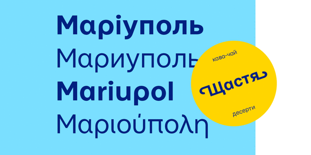 Шрифт Mariupol — это геометрический гротеск, вдохновленный, с одной стороны, швейцарской и немецкой плакатной графикой, с другой — современными технологическими гарнитурами San Francisco, Graphik, Walsheim. Доступен в трех базовых начертаниях: обычном (Regular), полужирном (Medium) и жирных (Bold). Также в комплект добавлено специальное начертание с пиктограммами (Symbols). Поддерживаются украинский, английский, греческий, русский языки. Сейчас шрифт официально представлен в городской навигации Мариуполя, его можно увидеть и на трамваях, и на бордах с поздравлениями мэра. Более того, каждый желающий может скачать этот шрифт и самостоятельно что-то написать по-мариупольски. Шрифт Mariupol разработали Андрей Шевченко и Сергей Родионов в 2017 году.
