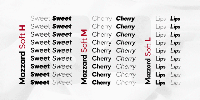 Mazzard Soft M – это часть шрифтового семейства Mazzard Soft, которое в свою очередь является версией с закруглёнными углами суперсемейства Mazzard. В этой версии есть ещё два геометрических гротеска, которые отличаются высотой строчных знаков (H и L).