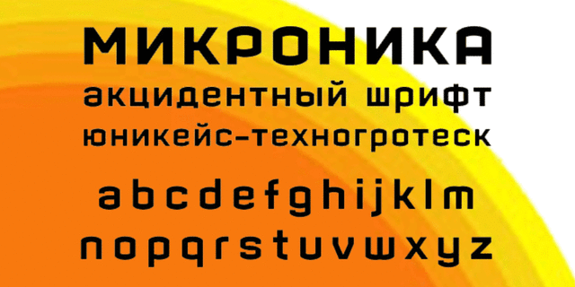 Шрифт Микроника разработан Андреем Кудрявцевым в 2009 году.