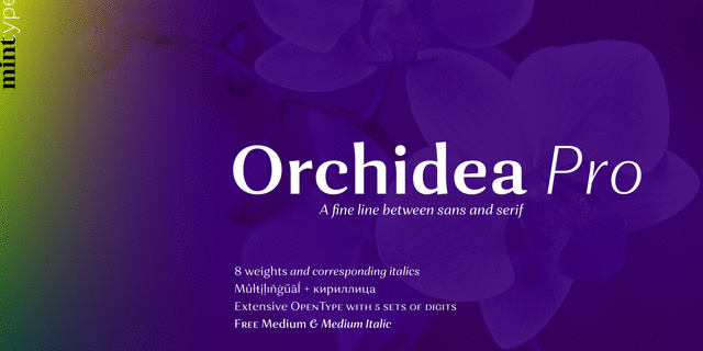 Шрифт Orchidea Pro разработал и выпустил Андрей Константинов в студии Mint Type в 2017 году.