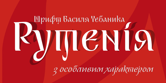 Изысканный шрифт Рутения (обновленный) в двух начертаниях является цифровой версией знаковой работы «Графіка української абетки» известного украинского каллиграфа и книжного графика Василия Яковлевича Чебаника. Прямое и курсивное начертания Рутении, прекрасно работают в акциденции и коротких текстах. Декоративность, выразительность и вариабельность помогут при создании логотипов. Некоторая торжественность и украинская окраска пригодятся для создания поздравительных открыток, дипломов, посвящений и благодарностей. Расширенная латиница и стандартная (современные славянские языки) кириллица позволят оформлять тексты на десятках языков. Этот шрифт уникален тем, что в нем Василий Яковлевич представил буквы украинского алфавита, максимально приближенные к первичным традиционным формам, которые были несколько искажены реформой Петра I, от чего нынешняя украинская кириллица имеет много некорректных и несуразных букв, хотя мы к ним уже привыкли. Например точечки вверху и внизу буквы О – это элементы, которые использовались в глаголице, предшествовавшей кириллическому письму.