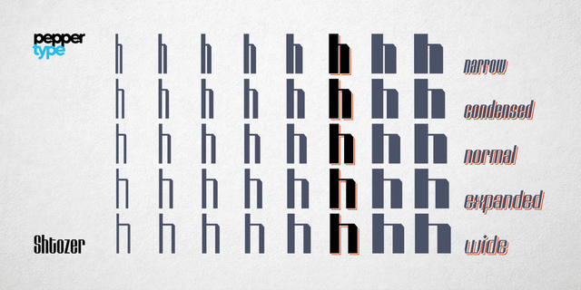 Ассоциации c начертанием Shtozer 600 CondensedКачества и характер: