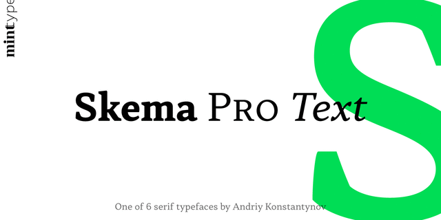 Семейство Skema Pro разработал и выпустил Андрей Константинов в студии Mint Type в 2017 году.