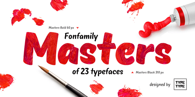 Мастерс – это очень эмоциональная гарнитура. Начертания этого семейства добавят искренности и повысят доверие к вашему продукту. Шрифт содержит четыре стилистических набора: Masters (основной), Masters Birds (птицы), Masters Rough (грубый) и Masters Condensed (компактный). Каждый набор представлен в пяти классических весах: Тонкий, Светлый, Нормальный, Жирный и Сверхжирный. Мастерс предназначен для использования в логотипах, заголовках и другой акциденции рекламного или развлекательного характера. Шрифт разработан Иваном Гладких в студии TypeType в 2015 году.