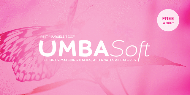 UMBA Soft – это мягкий гротеск со скругленными краями, успокаивающий ваш дизайн, и помогающий сбалансировать текст и изображения. Вам нужен шрифт для подростковой косметики или других продуктов, связанных с молодыми людьми? Ваше творение должно быть мягким и нежным и вам нужен соответствующий шрифт? Что-то приятное, сладкое, мягкое, но с широкими возможностями серьезного шрифтового семейства, решающего различные задачи? Umba Soft – ваш выбор! Ваша типографика значительно улучшится и UMBA Soft станет вашим любимым шрифтом!